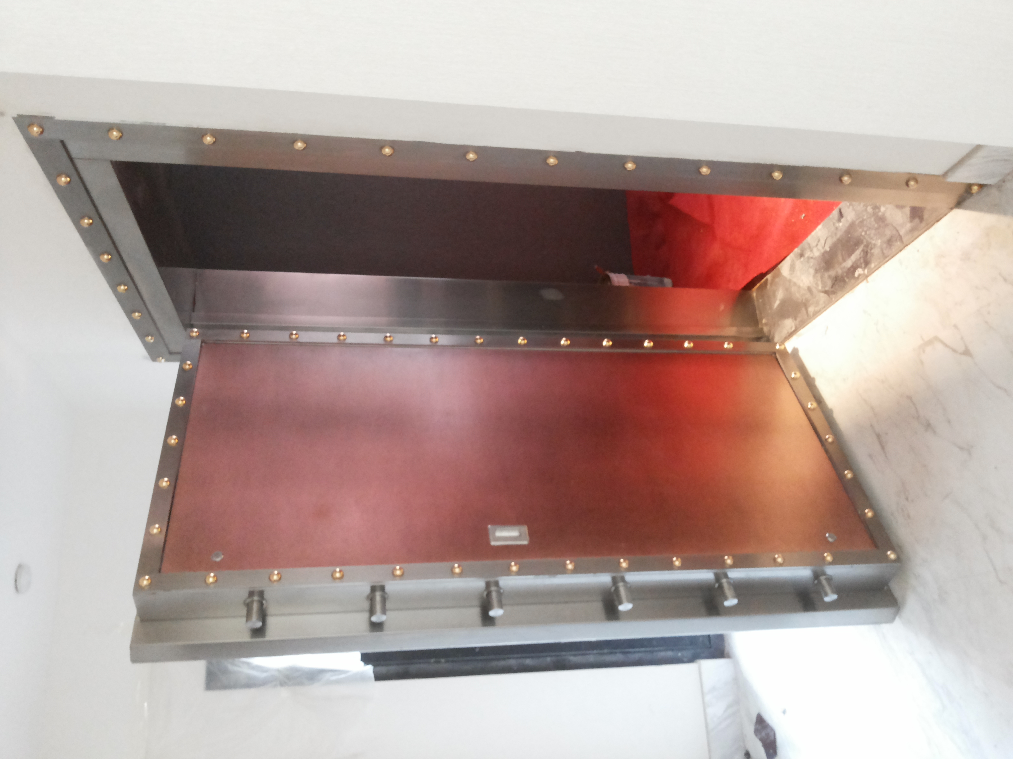 不銹鋼金庫(kù)門廠家為某私人不銹鋼藝術(shù)金庫(kù)門安裝后效果圖-特種門廠家。